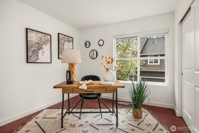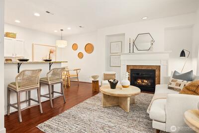 Soft hues and warm light grace this one-of-a-kind abode at Villagio Townhomes in Issaquah Highlands! Enjoy a vibrant setting next to Grandview Park, Kirk Park, Bark Park, and nearby nature trails. This home features impressive upgrades, including a remodeled bathroom, new flooring, designer lighting, and fresh interior paint throughout. A stylish kitchen with granite countertops, tile backsplash, and newer stainless steel appliances. Awesome layout - open kitchen and living room, cozy breakfast nook, three bedrooms on the top floor, and a spacious laundry room. Gorgeous primary suite featuring a Juliet balcony with French doors, ultra-high vaulted ceiling, sizable walk-in closet, and an updated bath. Rare oversized front patio provides the perfect space to relax and unwind. A side-by-side two-car garage and low HOA dues tops it all off! Live well at Villagio in Issaquah Highlands!