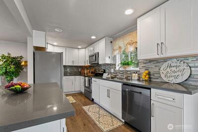 Welcome to this beautifully updated home in the SeaTac area, offering the perfect blend of comfort, space, and convenience. With 4 bedrooms and 2 3/4 baths, this thoughtfully designed residence features a desirable one-story layout with a fully finished daylight basement. Ideal for multi-generational living, guests, or flex use. Enjoy 2,120 sf of well-appointed living space, where tasteful updates create a warm, inviting atmosphere throughout. The home is set on an expansive 15,133 sf lot, and the backyard is a true standout backing to a lush greenbelt that provides privacy, serenity, and a beautiful backdrop. Located minutes from Sea-Tac Airport, major freeways, shopping, dining, Angle Lake, and everyday amenities, this home combines peaceful surroundings with unbeatable convenience. A rare opportunity to own a spacious updated property with a private greenbelt setting in a prime location. This home would also be an ideal rental property. Sellers were seeing a lot of interest in
