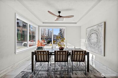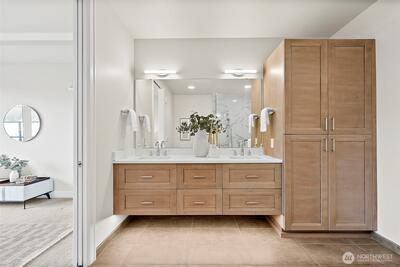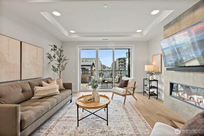 Experience the best of the PNW in Point Ruston. This beautifully designed 2-bed, 2-bath condo offers 1,207sqft of light-filled living space and a truly special oversized deck with peaceful Village views—perfect for morning coffee, sunset dinners, or simply soaking in the energy of this vibrant community. Inside, the open-concept layout flows effortlessly for everyday living and easy entertaining. Designed for indoor-outdoor living, sliding doors open to the expansive deck from both the living room and the primary suite, creating a seamless extension of your living space. Large windows invite in natural light, while thoughtful design creates comfort without compromise. Life here is about connection—to the outdoors and to your community. Enjoy exclusive Rainier Building amenities plus full access to everything Point Ruston offers. With exceptional walkability, you’re just steps to waterfront trails, parks, dining, shopping, and the beauty of Puget Sound. Whether you’re a runner,