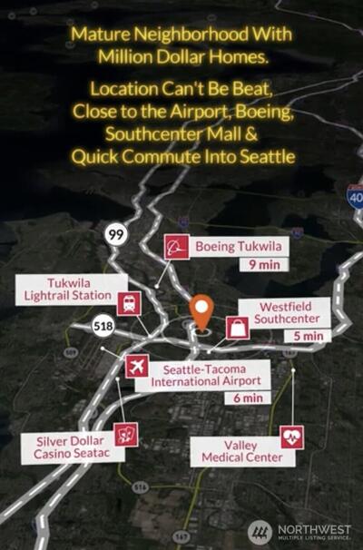Prime 1.25-Acre High Yielding Development Opportunity in Tukwila! Invest in 1.25 acres in the heart of booming Tukwila with brand-new LDR (Low Density Residential) zoning—offering exceptional flexibility and upside. Public power, water & sewer are available in the street (56th Ave S), helping streamline the development process. NO Sewer cap charges in Tukwila. Even better, per King County GIS mapping, the property is not impacted by sensitive or critical areas. The King County Soil Survey (USDA Soil Conservation Service) identifies the site as Urban land–Alderwood complex, offering added confidence as you plan your build. Unmatched location with quick access to I-5, I-405, and SeaTac Airport. Just minutes to Valley Medical Center, Foster Golf Course, Southcenter Mall, Boeing, and downtown Seattle. The parcel is accessible from both 55th Ave S (west) and 56th Ave S (east), providing flexible site planning options. Rare opportunity to secure a sizable, development-ready parcel in a