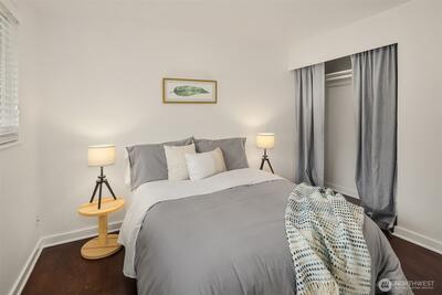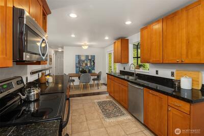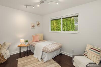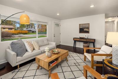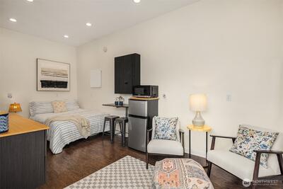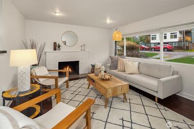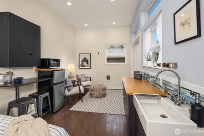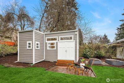 Live near the excitement & feel the charm of this wonderful 3 bedroom rambler with a “tiny house” in the back. Nestled on a quiet street in Shoreline's North City neighborhood. Step inside & you will find a welcoming open floor plan w/gleaming hardwoods & wood-burning fireplace. The spacious kitchen features granite counter tops, & stainless steel appliances. Laundry/utility room has lots of extra storage space. French doors off the dining room open up to a gorgeous fully-fenced back yard, huge covered patio for entertaining, raised garden beds & BBQ. Tiny house has a studio w/kitchenette & 3/4 bath. Perfect for remote office or rent it out for extra income! New roof, chimney & efficient furnace 2022. New gutters 2026. Great investment potential on an oversized level lot. Top rated Shoreline schools! Close to excellent amenities & just 1/2 mile to light rail station. Easy access to I-5, Shoreline CC, Northgate, downtown & airport. Lovingly maintained and fully inspected so you can