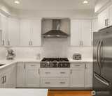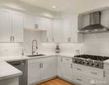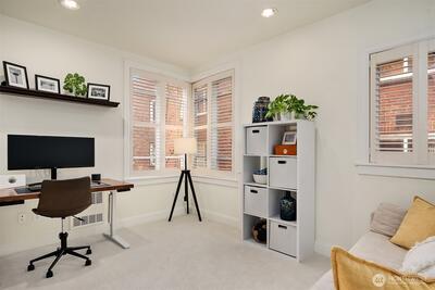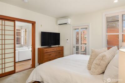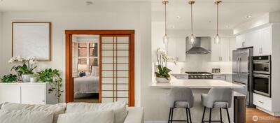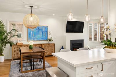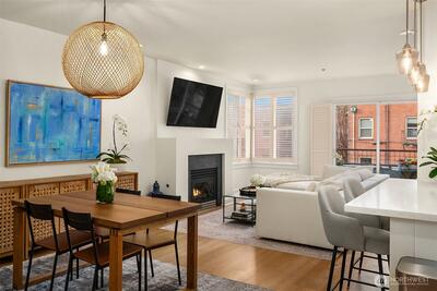 Stunning home in a gorgeous 6-unit brick boutique community in highly desirable Lower Queen Anne! This beautifully renovated residence features 3 bedrooms and 2 full baths with premium finishes throughout. The chef’s kitchen showcases gas range, stainless steel appliances, quartz countertops, a breakfast bar, and $50K in thoughtful updates. Light-filled living room offers a cozy gas fireplace and French doors opening to a sunny southwest-facing porch. The spacious primary suite includes a large walk-in closet and a luxurious 5-piece bath with a large soaking tub and separate shower. Recent upgrades include 3 new mini-split A/C systems, updated guest bath, new luxury vinyl flooring, and updated light fixtures. Custom window shutters and handcrafted Shoji doors add elegance and privacy. Enjoy in-unit laundry, 2 secure parking spaces, a large storage unit, a strong HOA, and a pet-friendly community (2 pets allowed). Walk Score of 96 with easy access to coffee shops, dining, groceries, D
