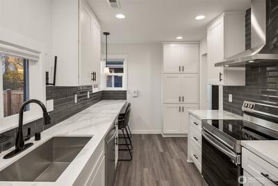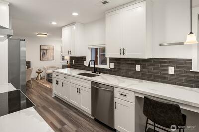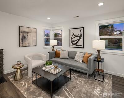 Expertly remodeled + move-in ready, this North Beacon Hill home blends classic charm with modern upgrades. Natural light fills open-concept + spacious living area with fireplace adding timeless character. The kitchen is a standout feature offering stainless appliances, quartz counters + stunning white cabinetry. Four bedrooms spread over two levels. Bathrooms are sleekly renovated + visually appealing. Outside, enjoy large, fenced backyard oasis with patio + shed. Attached garage + newer systems/roofing . Incredible location is close to light rail + major commuter routes. Ten minutes to downtown + convenient for travel to Eastside. Exceptional neighborhood offers world-class dining, parks, shops.