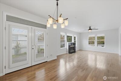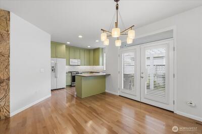 Privately situated behind the security gates in the coveted community of Goldmont, this beautifully maintained rambler-style condo offers the comfort and privacy of a single-family home with the convenience of condominium living. Featuring an open-concept layout with soaring 9-foot ceilings, the home welcomes you with a bright and airy entry. To the left, a versatile office or den provides the perfect work-from-home space, while guest quarters and a nearby bath are thoughtfully positioned on the right. The spacious king-size primary suite offers a peaceful retreat with a large walk-in closet and a luxurious five-piece bath. This condo has been tastefully updated with a newly remodeled kitchen (2019) featuring modern finishes and an induction range installed in 2023. Beautiful wood floors installed in 2019 run throughout the home, and the primary bathroom was fully remodeled in 2020. Enjoy the quiet, peaceful surroundings in this bird and wildlife-friendly community. Each unit inc