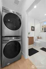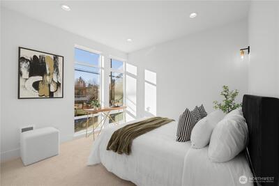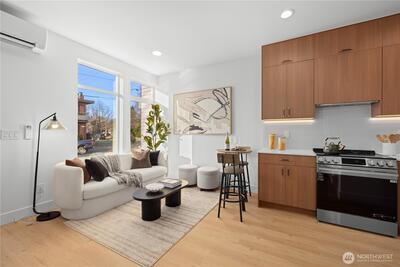 Special 3.25% Rate* — Move-In Ready New Construction! Nestled in a quiet residential neighborhood, this stunning modern home offers refined design, thoughtful flow & EV-READY PARKING INCLUDED! A bold architectural façade makes a striking first impression, while inside you’ll find an open-concept living and kitchen space anchored by a beautiful wood slat accent wall that adds architectural character. The chef-inspired kitchen is appointed w/premium SS appliances, quartz countertops, custom cabinetry with under-lighting, designer hardware, and a built-in appliance garage. The second level features a spacious bedroom and full bath: ideal for guests, flex space or dedicated home office. The top-floor primary suite lives like a private retreat, complete w/spa-style bath & heated floors. Enjoy peaceful outdoor living on the rooftop deck finished w/premium, low-maintenance Trex decking—highly durable and built to last! Ideally located near Green Lake, Parks, Golden Gardens, Ballard sho