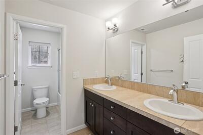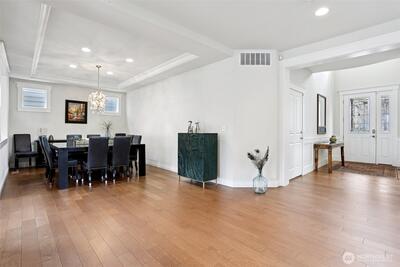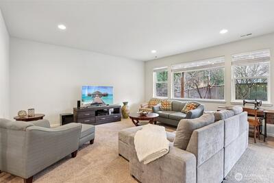 Welcome to this stunning Renton Highlands home in the coveted Liberty Gardens community. Tucked away on a quiet no-through street, this luxurious home offers the perfect blend of privacy, comfort, and community. Located in the highly sought-after Issaquah School District and just moments from a wooded walking trail and neighborhood park, the setting is as exceptional as the home itself. Step inside to soaring ceilings and abundant natural light filling the expansive living spaces. The open-concept design is anchored by a chef’s kitchen with new countertops, updated main-level flooring and stairs, and thoughtful finishes throughout, including tile and countertops in the laundry room and bath, plus A/C for year-round comfort. A main-level den provides flexible space for a home office or guests. With five spacious bedrooms, including a generous en-suite primary retreat, this home is ideal for generational living. The daylight basement features a private bedroom and bath—perfect