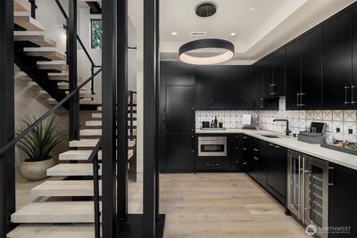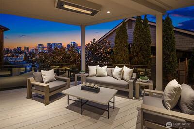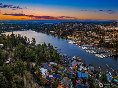 Experience breathtaking views of Lake Washington's Meydenbauer Bay, Marina, and the Bellevue skyline from this masterpiece by Overbrook Construction, located less than a half-mile from Old Main Bellevue. Thoughtfully designed, this architectural marvel blends steel, stone, concrete, glass, and wood to create stunning spaces, including a main-level guest suite, open living areas, and a chef's kitchen with a large island, custom cabinetry, and butler's pantry. The primary suite features sweeping views, a spa-inspired bath, and a bistro-view deck. The lower level offers a media room, wine cellar, and private ADU with full kitchen, and patio entry. Elegance, privacy, and modern sophistication in a prime Bellevue location.