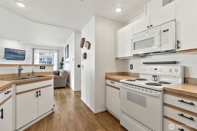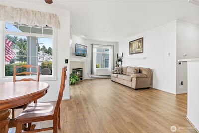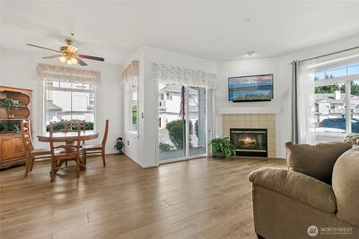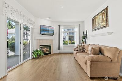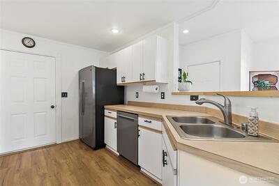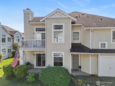 Short Sale....Condo living at The Lakes. This lovely corner unit, ground level condo offers an open and spacious floor plan. Lots of natural light. 2 bedroom / 2 bath, walk-in closet in the primary, open kitchen to the living room and a nice patio off the living room. Attached garage w/ room for storage. New flooring, interior paint, (professionally done) refridgerator, dishwasher, and garage door opener. All appliances stay for buyer. Plus.. open parking directly in front and to the lside of unit. Within minutes of Kent Station, Hwy. 167, parks, shopping, and restaurants. This lovely home is ready to move into.....