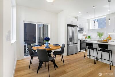 Brand new SmartBuild construction in North Seattle. 3 bed / 3 bath townhome with private ground-floor bedroom suite and separate entry — ideal for rental income, Airbnb, or multi-gen living. 1,559 SF of modern finishes and energy-efficient systems throughout. Rooftop deck with BBQ hookup and territorial views. Parking spot available for purchase. Minutes to Northgate Link, UW, and I-5. $20K Builder Flex Cash Incentive!