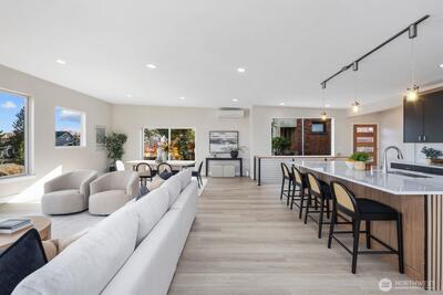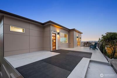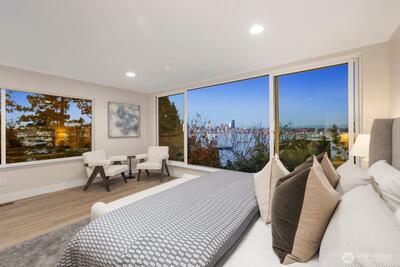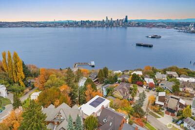 Indulge yourself with this rarest of finds—a true hidden gem above Alki unlike anything Seattle has seen. This bespoke North Admiral new construction showpiece captures the essence of modern artistry & precision craftsmanship, framing panoramic skyline & Bay vistas through sweeping walls of glass. Every room delivers front-row seat to the city’s dynamic horizon. The 4bed 3.5bath main home features an open-concept great room that blurs the line between grand entertaining & tranquil retreat, while a permitted 1bed 1bath ADU with separate entrance offers unmatched versatility or income potential whether renting it out long- or short-term i.e. Airbnb. Further unlock future value w/ DADU built on a generous lot. Best price/sqft value for a brand new view home boosting over 3,600sqft of wow factor! Solar panels, Tesla inverter, premium finishes & high-efficiency home systems showcase innovation at its finest. Just minutes to water taxi, cafés, beaches & West Seattle Bridge—this is lux