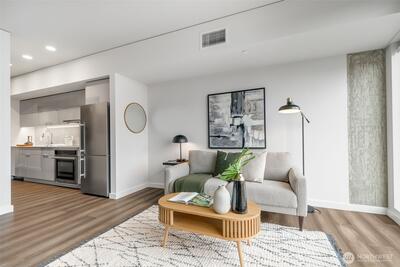 KODA stands out as one of downtown Seattle’s best values, delivering superior construction and high-end amenities rarely found at this price point. Enjoy a rooftop terrace, sweeping city and stadium views, club lounge with dining space, game and conference rooms, co-working areas, fitness center, guest suites, and more. Perfectly positioned between Downtown and the CID, just blocks from Light Rail, Sounder, Amtrak, ferries, bus lines, and convenient freeway access - urban connectivity at its best. This 11th floor home features a spacious living area framed by floor-to-ceiling windows showcasing expansive easterly views. The nearly new kitchen offers quartz counters, Blomberg appliances, and Kohler fixtures. Pet-friendly with indoor dog run and pet wash. Ideal for owner-occupants, a pied-à-terre, or investment. Located in an Opportunity Zone and steps away from the 2026 World Cup this summer.