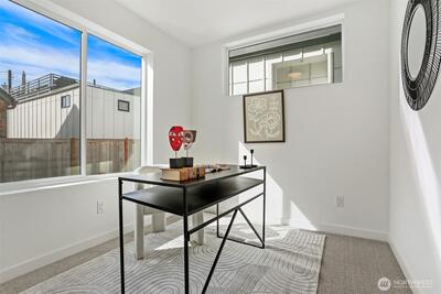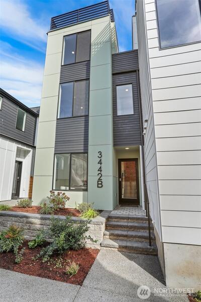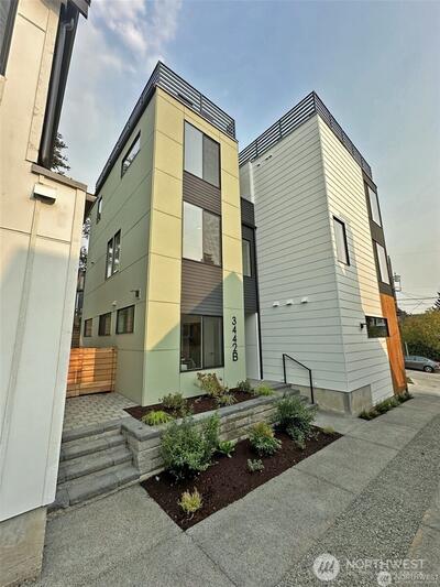 Best price for the best views! Well worth the visit to see the views. Location! Location! Location! Very unique 6 unit project in one of North Seattle's most sought after neighborhoods; Sunset Hill. This unit has West facing windows that provide an abundance of natural light. 1st floor has a bedroom, den/office & a full bath. The 2nd floor has an open floor plan w/ high ceilings & large picture windows. The kitchen is well appointed w/ stainless steel appliances. 3rd floor has a spacious primary bedroom & 3/4 bath. The primary bedroom has views of the Sound/Olympic Mountains. This home has a large rooftop deck w/ stunning views of Sound/Olympics. Fenced yard. 1 assigned off-street parking spot. Near Picolinos, Ray’s, Shilshole, Ballard Locks, Elks, Golden Garden, Sunset Park & much more.