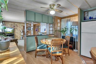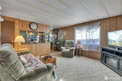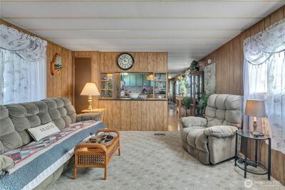 Welcome home to this beautifully cared-for 2-bedroom residence in the highly sought-after Town & Country 55+ Community in Puyallup. Light-filled and tastefully updated, this inviting home offers a spacious kitchen with abundant cabinetry, a cozy dining area, and comfortable living spaces designed for easy, low-maintenance living. Huge carport with extra-large storage space, private yard, and easy ramp access to your unit. Enjoy peaceful mornings on the covered porch overlooking your open and private backyard, which backs to a sprawling green space frequently visited by local wildlife, creating a serene and picturesque setting. Attractive landscaping and true pride of ownership shine throughout the property.Community amenities include a clubhouse, RV parking, well-maintained grounds, and a friendly, professionally managed neighborhood atmosphere. Conveniently located near shopping, dining, and everyday essentials, this affordable, move-in-ready home offers the relaxed lifestyle you’ve