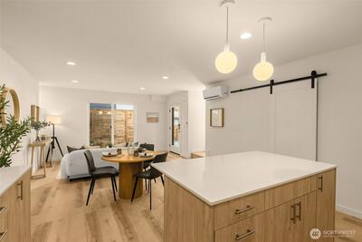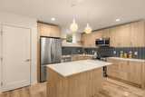 Built by Blackwood Homes, this beautifully designed home blends elevated style with everyday functionality. The open-concept main floor offers seamless flow between the kitchen, dining, and living areas; ideal for both entertaining and comfortable daily living. A spacious quartz island anchors the kitchen, creating the perfect gathering space, while the living area opens to a private patio for effortless indoor-outdoor enjoyment. Upstairs, you’ll find two well-appointed bedrooms, including a generous primary suite with its own private bath. A full hall bath serves the secondary bedroom, and conveniently located upstairs laundry enhances daily livability. A main-floor powder room adds comfort and convenience for guests. Known for quality craftsmanship, clean lines, and intentional layouts that maximize space and natural light, this home delivers modern comfort with timeless design throughout. EV-wired dedicated parking space. Conveniently located directly across from Brighton Play