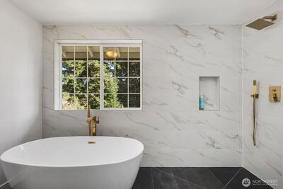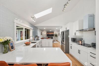 Elegance and easy living collide in this beautifully remodeled home in Federal Way's Brooklake Heights neighborhood. Offering 3 bedrooms, 3 baths, and 2,790 sq ft of thoughtfully updated space, this space was re-imagined in early 2020 with not a single detail missed. Engineered hardwood flooring, quartz countertops and stainless appliances highlight the centerpiece kitchen with luxury and modern functionality. Tasteful primary bathroom updates include a soaking tub/shower combo, new vanities, tile flooring, and fixtures all which create spa-like tranquility on every level. These intentional design choices reflect in the home's abundance of natural light, creating a warm yet sophisticated atmosphere ideal for both entertaining and a quiet retreat. Set on an expansive 1/3 acre lot and backing up to a greenbelt, this property is a rare find delivering endless possibilities for outdoor enjoyment and privacy. Nestled within a cul-de-sac and easy walking distance to schools, parks, transit,
