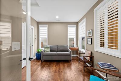 Resort living, redefined. This former model home in Trilogy at Tehaleh offers high-end finishes, a lock-and-leave lifestyle, and walkable access to the Seven Summits Lodge with pool, fitness center, dining, and social spaces. Bright, open-concept layout with engineered hardwoods, quartz surfaces, and a stunning kitchen featuring premium appliances and a built-in wine cooler. The versatile “Smart Space” provides flexibility for a home office, hobbies, or additional storage. Spacious primary suite with walk-in closet and well-appointed bath. Private, low-maintenance outdoor living—perfect for morning coffee, an evening beverage, or effortless entertaining. Enjoy pickleball, miles of scenic trails, and a vibrant 55+ community just outside your door. Turnkey, stylish, and designed for easy living, connection, and freedom.