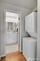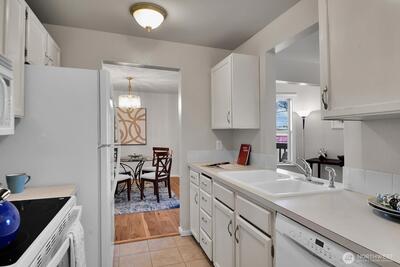 Great 1 bedroom condo close to transportation, shopping, parks, Seattle Pacific University, bike trails, waterfront, plus more! New laminate wood floors throughout. Nice floor plan. Updated bath. New stove, newer refrigerator. New large capacity hot water heater. Walk-in closet. In unit washer/dryer. 2 spacious decks! Off street parking. Low HOA Dues. Territorial view to Queen Anne hill. Pets are Ok!