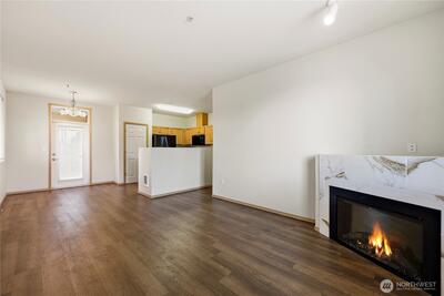 Hard to find 3 bedroom, top floor and end unit. Open concept kitchen and living area with 9 foot ceilings complete with a beautiful fireplace. Large primary suite with sliding glass door to a balcony, includes walk in closet and bathroom with dual sinks. Upgraded low maintenance flooring throughout. Totally move in ready with all appliances staying.