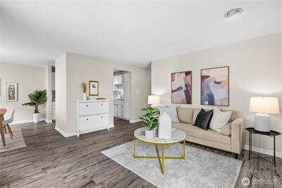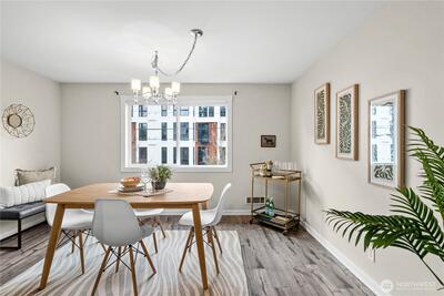 Turn up the energy and settle into one of Seattle’s most sought-after neighborhoods — Greenwood — where destination dining, great coffee, and everyday convenience shape an effortless urban lifestyle. This rare, oversized 2-bedroom corner condo offers the space you’ve been craving with a bright, open layout built for entertaining, relaxing, and working from home. Sunlight fills the living area while a cozy wood-burning fireplace adds warmth and character. The standout feature is your private covered deck, creating an extension of your living space that’s perfect for morning coffee, evening wine, container gardening, or year-round lounging regardless of Seattle weather. It’s the ideal setting for hosting friends or simply unwinding outdoors without leaving home. Just moments away, enjoy neighborhood favorites like FlintCreek Cattle Co., Makeda & Mingus, pastries and coffee at Coyle's Bakeshop, and everyday essentials at Trader Joe's. Inside, the renovated kitchen features new