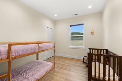 Like-new contemporary home built in 2023 on almost five usable, peaceful acres. This 4-bedroom, 2.5-bath home offers 9’ ceilings, abundant natural light, and an open, functional layout with all bedrooms on the main level—each featuring walk-in closets—plus a large bonus room upstairs. The spacious kitchen includes a large island, walk-in pantry, coffee bar, and stainless-steel appliances. The primary suite offers a generous walk-in closet and large tile shower. Additional features include a spare subpanel, two 50-gallon water heaters, large laundry room, attached 2-car garage, covered front porch, and an oversized covered back patio for year-round outdoor living. Huge bonus: approved ADU plans and permits on file plus a second well already installed. Open yet private setting with a newly built sauna—ready for its new owner with excellent future potential. Priced well below the original appraised value of $780,000.