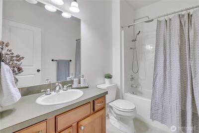 Welcome home to your cozy townhouse in the private gated community of Selbourne Lane in Kent's East Hill. Freshly painted open floor plan with new honey colored LVT flooring throughout the main floor. Modern kitchen with granite counters, new refrigerator & garbage disposal, lots of cabinet space and a separate walk in pantry. Main level bedroom & full bath which could easily be a second primary. Open floor plan with living & family rooms lead to a private patio with room for grilling and entertaining. AC will keep you cool in the summer! Upstairs the large primary suite features a walk-in closet & a spa-style bath. Versatile bonus room/office loft for a second tv room. Convenient second floor laundry room. Attached 2-car garage and 2 car pad in front. Low-maintenance living, the home is designed for entertaining & enjoyment. Just minutes to shopping, dining, public transit, parks, & quick access to I-5 & Hwy 167 for easy commuting. Virtually and partially staged.