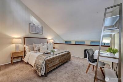 Stunning remodeled lakefront townhome offering modern style and serene waterfront living. Light-filled interior with new luxury plank flooring, plush carpet, updated lighting, and a wall of windows showcasing beautiful lake views. Well-appointed kitchen features stainless steel appliances, large pantry, sleek cabinetry, granite countertops, and seating bar. Updated baths include new vanities and refreshed tile. Enjoy the spacious view deck, your private retreat for morning coffee or evening sunsets. Vaulted primary suite with high windows; versatile second bedroom ideal for guests or office. Dedicated parking and in-unit laundry. Enjoy resort style amenities including pools, tennis courts, clubhouse, lakes, and walking trials. Minutes to Microsoft, downtown Redmond, shopping, dining, and top-rated Lake Washington schools. Ideal blend of comfort, convenience, and community living. Strong HOA, abundant guest parking and no special assessments. Experience lake front living at its finest.