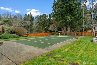 Incredible opportunity in the highly sought-after Olympic Hills neighborhood! This beautifully updated home sits on over an acre of dreamy, flat grounds, complete with fruit trees, a garden with raised beds, a secret garden, and your very own pickleball court—perfect for active fun right at home. Location is everything—just minutes to Sehmel Park, where the community gathers for summer concerts, Movies in the Park, and the iconic Scarecrow Festival, as well as miles of trails for walking, running, and biking. Stroll down to Rosedale Market for a relaxed afternoon, enjoy an ice cream on the front porch, and watch the baseball field across the street—this is small-town charm at its finest. Inside, the home has been refreshed with designer touches throughout, including a repainted kitchen, new fireplace surround, refinished hardwoods, & a fully updated primary suite featuring a soaking tub, quartz vanity, & modern tile. The 2nd-floor primary bay window looks out over gorgeous ground