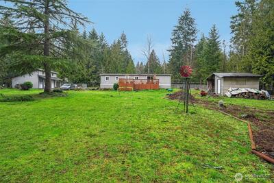 Immaculate 3-bedroom home plus den featuring 2 full baths and open-concept living. Situated on a gorgeous fully fenced 1+ acre lot surrounded by majestic cedar trees. Recent updates include newer carpets, a brand-new furnace, and a newer roof. Enjoyboth front and back decks—perfect for relaxing or entertaining—along with two additional outbuildings for extra storage. The detached 22x22 shop provides ample space for a workshop, hobbies, or potential DADU. Tucked away on a peaceful dead-end street in a beautiful neighborhood, this home is a private retreat with room to breathe.
