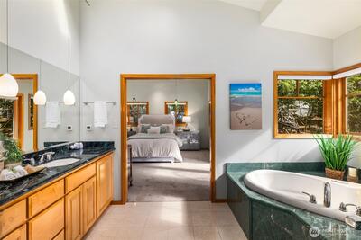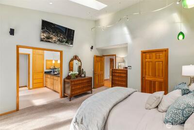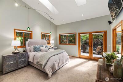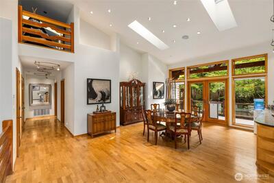 Step into this luxury home that will inspire you and whomever you invite over. Soaring 18ft ceilings, a wfh office w/personal library vibes that'll make you want to stay home, a wide open cook's kitchen, and a dining space for ten people all await in this sprawling two-story floor plan. There's several sets of French doors & Northwest-inspired pocket doors & features throughout this stunning display of architecture designed by Carlietti Architects. There's a calming view of Lake Sammamish as you'll be perched above your neighbors for privacy and amazing light will fill this home all day. Love to display art? You'll find this home full of canvases for your favorite collection pieces and there's even a couple playful murals inside this home commissioned by the original owners that will make you smile. Entertain on holidays/weekends for 15 or 50 guests easily inside or outside while overlooking your Japanese garden-inspired backyard on your full-length oversized deck space. Floorplan: On
