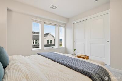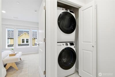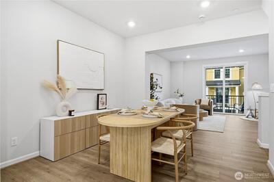 Welcome to this almost-new townhome at Woodside by Taylor Morrison, where modern design meets everyday comfort. The entry level features a versatile den—perfect for a home office—along with a convenient powder room. The light-filled main level showcases an open-concept kitchen with a central island and gas range, flowing seamlessly into a functional dining area and spacious living room. Step outside to a private covered deck with an open view—ideal for morning coffee or year-round relaxation. Upstairs, the top level offers a quiet retreat with a laundry area and two generous suites, including a primary suite with dual vanities and a walk-in shower. Complete with a 1-car garage, EV charger and smart-home features, this home is just minutes to Costco, Downtown Redmond, the Microsoft campus, and Downtown Bellevue. Set in a quiet, thoughtfully designed community surrounded by natural areas and top-rated schools, it delivers the perfect balance of comfort, lifestyle, and convenience.