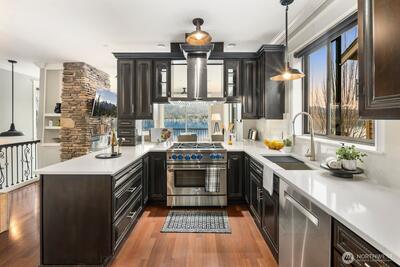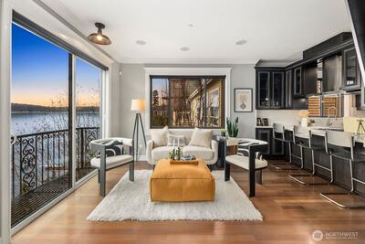 Live your best lake life in this stunning Lake Sammamish waterfront home with panoramic 180° views. The well-maintained interior features soaring ceilings and an open layout that lives large. The chef’s kitchen, complete with a dual fuel range, is perfect for dinner parties or cooking up your latest catch from the private dock with boat lift. Enjoy a rec room, expansive entertaining patio, and low-maintenance backyard made for sunset wine nights. The primary suite offers front-row lake views, plus parking for four. Located in the sought-after Issaquah School District.