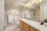 Experience refined living in Providence Point’s gated 55+ community. This quiet end-unit at The Lodge offers 1,505 sqft with fresh paint, new carpet, two spacious bedrooms, and two spa-inspired baths. The open living and dining area features a welcoming fireplace and opens to a private balcony with peaceful, tree-lined views. A well-designed kitchen with a cozy nook and an in-unit laundry room add everyday ease, while reserved garage parking and extra storage provide convenience. Enjoy exceptional amenities, including an indoor pool, hot tub, fitness center, sport court, and a variety of activities. With its tranquil setting and secure gated entrance, this home blends comfort, style, and community, your next chapter begins beautifully here.