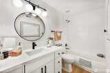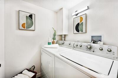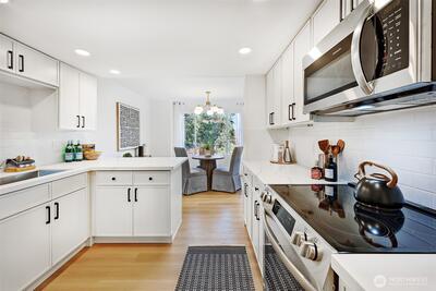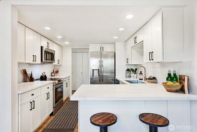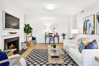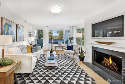 Welcome to this spacious, 1,253-square-foot, top-floor corner unit ideally situated with a serene and lush outlook, yet located in the heart of Shoreline, close to all amenities. The living room is flooded with natural light and features a gas fireplace and adjoining balcony. Home chefs will appreciate the stainless-steel appliances, quartz countertops, abundant storage, adjoining breakfast bar and dining area -- perfect for entertaining and gathering. Spacious primary bedroom with an en-suite bath and a second bedroom ideal for guests, hobbies, or WFH setups. In-unit full-sized laundry, second full bathroom. Elevator in the lobby is just a handful of steps from the unit’s private and secure, dedicated 1-car garage. Well-managed HOA with strong reserves. Errands and commuting are a breeze with two Link light rail stations, HWY 99, I-5, and sought-after retailers like Costco, Trader Joe’s, Fred Meyer, and Town & Country Market mere minutes away. Simply move in and enjoy!