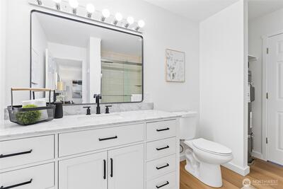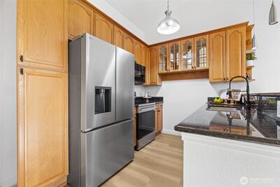 Welcome to this beautifully remodeled top-floor condo in the heart of Kirkland’s desirable Totem Lake neighborhood. This light-filled one-bedroom residence features soaring vaulted ceilings that create an expansive, open-concept living space rarely found in condo living. The dramatic ceiling height enhances the spacious feel, while large windows invite in abundant natural light. Step outside to your oversized private balcony—perfect for morning coffee, evening relaxation, or entertaining guests. Ideally located just minutes from major freeways, this home offers effortless access to everything Kirkland has to offer, including scenic waterfront parks along Lake Washington, miles of hiking and biking trails, premier dining, and boutique shopping. Golf enthusiasts will appreciate being only moments from Willows Run Golf Complex. Fully remodeled and truly move-in ready, this condo is perfect for a first-time buyer or savvy investor. With no rental cap, it offers exceptional flexibilit
