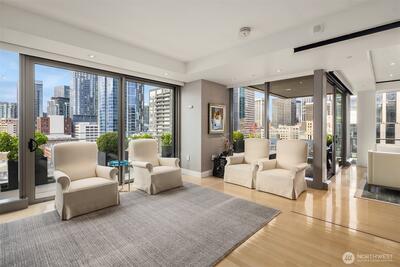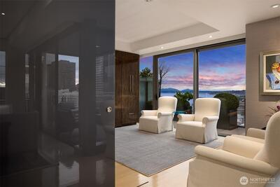 Introducing Four Seasons Private Residence 1704, a stunning property that offers a large, private primary bedroom suite, spacious den with high-end murphy-bed, 2.25 baths complete with custom wood, glass and steel luxury finishes. Hardwood floors throughout, custom lighting and ample built-in storage. Butler’s pantry/laundry conveniently located off kitchen. Spacious view-terrace for seamless indoor and outdoor living and entraining. Perfect for in city Pied-à-terre or full-time residence. Flawlessly orchestrated by the dedicated hospitality team, effortless living at Four Seasons Seattle transcends the definition of service, with amenities such as 24 hr room service, Security, Concierge, Valet, Spa, Pool, Housekeeping, Fitness Center, 2 deeded parking spaces, & storage. Perched at the water’s edge, experience living within the downtown core steps from the Great Wheel, newly expanded waterfront, Seattle Art Museum, premier dining & shopping. Discover a boutique setting with elegan