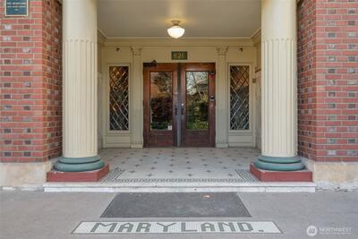 The Maryland is an architectural treasure set on one of North Capitol Hill’s most beautiful tree-lined streets, just steps from Volunteer Park and neighborhood cafés. This historic building welcomes you with box-beam ceilings and rich original woodwork. Located on the main level in the southwest corner, this spacious one-bedroom features high ceilings and newly refinished hardwood floors throughout. One of the larger one-bedroom layouts in the building, the unit offers ample space to live and work comfortably. Secure storage and laundry are conveniently located just steps from the unit. Residents also enjoy access to three shared balconies—perfect for relaxing and taking in the charm of this special community. You’ll love living here.