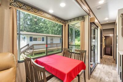 LAKE FRONT!! Wake up to a lake view 365 days with this flat buildable lot with loads of improvements! RV cover with slab, integrated electrical, sewer hook-up and water! RV goes with the property, so you're ready to hit the water as soon as you close! Attached extra large garage easily houses a pontoon boat AND extras! Hickory shed for added storage and approved fire pit. Located in Mayfield Kamper's Klub, this property offers extreme affordability with all the park extras, pickle ball court, walking trails, gated entry, playground and events, all for only $600/year, INCLUDING water and sewer! *sale is to become a shareholder in the club. Buyer must meet with club membership before closing. *work with Tacoma Power and Light to get a dock.