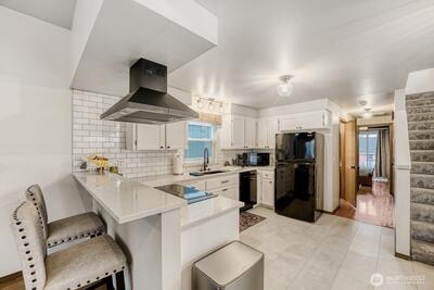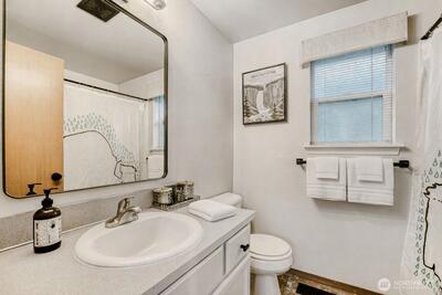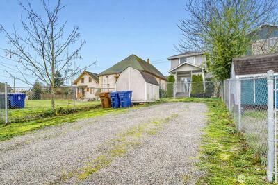 Conveniently located in central Tacoma with easy access to major transportation routes and everyday amenities. Close to coffee shops, restaurants, parks, grocery stores, UW Tacoma, local hospitals, the MLK Light Rail Line, and I-5. Upper level includes two bedrooms and a full bathroom. Main level features an additional bedroom with private exterior access. The kitchen offers quartz countertops, updated appliances, and refreshed flooring. Fully fenced backyard includes outbuilding. Rear alley access with off-street parking available.
