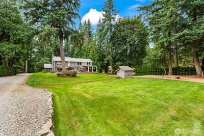 Situated on an idilic stretch of Pt Fosdick known for it's established community where homes seldom come to market awaits this fantastic residence for discerning buyers seeking prime location, privacy and flexibility! Nestled on over 1.5 park-like, manicured acres this retreat is located just minutes to HWY 16, all shopping, wonderful restaurants, great grocery stores, PenMet Parks new recreational facility, theaters, private and highly rated public schools as well as the gorgeous harbor waterfront. Turn key with lots of upgrades, this 3 bedroom home with tons of parking and circle drive offers a new roof and gutters, fresh exterior paint, refinished hardwoods, new expansive entertaining deck and beautifully remodeled kitchen and primary bath. The detached 2,200 Sq ft fully finished shop features a generously sized detached guest house with living area, kitchen amenities, laundry and 3/4 bathroom as well as a large, level RV parking area with dedicated power and separate septic. This b