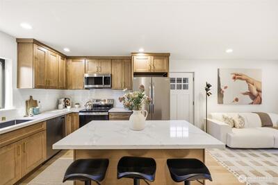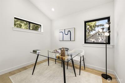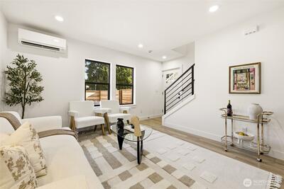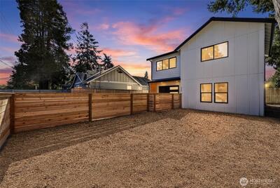 **New construction in Seattle's Greenwood neighborhood.** This custom built detached cottage 3 bedroom, 2.5 bathroom farmhouse inspired home offers direct street access and a fully fenced front yard. Designed for functional living, the open main level features a spacious kitchen with an island that flows into the dining and living areas, creating a comfortable setting for everyday use. Bathrooms are finished with tile surfaces for a clean, modern look. The layout provides flexibility for a variety of living arrangements, including guest space or home office use. The property includes an attached garage along with additional outdoor parking, offering convenience rarely found in similar homes. Located near neighborhood amenities, shopping, dining, and commuter routes, this home combines thoughtful design with practical features in a desirable Seattle location.
