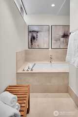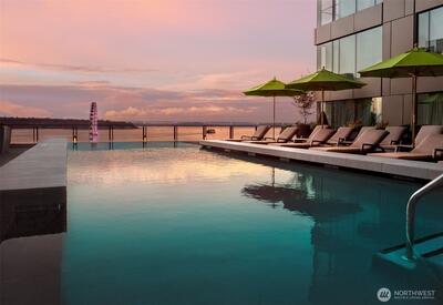 Experience elevated living at the Four Seasons Private Residences, perfectly located by downtown Seattle's renovated Waterfront District, Pike Place Market, the Seattle Art Museum, and Benaroya Hall. Coveted SW corner unit with 2 bedrooms, 2.5 bathrooms, and panoramic views of Mt. Rainier, the Stadium District, Puget Sound, and the Olympic Mountains. An elegant kitchen with designer finishes, a large island, and Sub-Zero/Miele appliance package overlooks the living and dining rooms. Floor to ceiling windows, beautiful hardwood floors, and a gas fireplace highlight the living spaces and open to an incredible view deck; perfect for relaxing or entertaining. The Primary Suite also opens to the view deck, while featuring a walk-in closet and spa-themed bathroom with steam shower, soaking tub, and heated tile floors. Automated shades, zone controlled heating, and central A/C provide added comfort. Privacy is paramount at the Four Seasons where residents enjoy unparalleled concierge service,