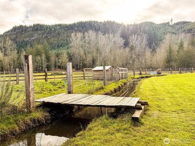 Discover an exceptional opportunity with this unique and beautiful 18.4-acre property. So much potential, and it's already started with the process. There is a well, and electrical on property , along with a partially finished 2400 sq. foot dwelling within the huge barn/shop. A nice 2018 single-wide with a functioning septic and an 'as-built' septic design ready to be passed along to buyer.The land has trees with gentle rolling hills, a fenced pasture with lush green grass for animals, and a picturesque setting for your project. There is an approved easement into the property, and the property borders Weyerhaeuser land. Trails for bikes and horses alike, with a sweet chicken coop to enjoy.