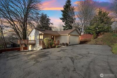 Fabulous Seward Park home in park-like setting. An oasis in the city, this home is private and serene. A charming covered porch and garden greet you. Enter to light-filled kitchen with skylights and dining area opening to a large south facing deck and yard. Enjoy a cozy living room with gas fireplace. Main level features primary bedroom with ensuite bath and 2nd bedroom and full bath. Daylight lower level with large rec room opens to grassy yard. 2nd kitchen plus two additional bedrooms and full bath makes for lots of useful space as home office or guest room! Great potential for ADU or Mother-in-law with exterior lower level access! A gardener’s paradise with delightful, sunny yard in a natural setting. Large, 2-car garage. Great location! Blocks to Lake WA, parks & recreation. Mins to Columbia City, Light Rail, freeway, airport & Downtown.