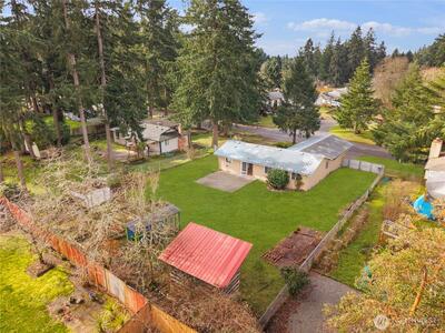 Classic ranch charm meets everyday practicality on this fully fenced, sun-drenched lot of over .25 acres — all within Olympia city limits and no HOA. Single-level living features a wood-burning fireplace and a primary bedroom with en suite bath. Architectural metal shingle roof adds peaceful rain drumming effect with lasting durability. Sunny exposure keeps the home bright year-round. Outside, a large patio, raised garden beds, chicken coop, wood shed, and garden shed make this a rare find for those craving a little homestead lifestyle without leaving town. Plenty of room to park your RV or boat. Beautiful Camellia adds seasonal color to this already charming property. Bring your cosmetic vision — the location and lot do the heavy lifting. Minutes to the RAC, local parks, and Nisqually Middle School with an easy commute to JBLM or Downtown Olympia or Tacoma. Perfect for first-time buyers or investors ready to add value.