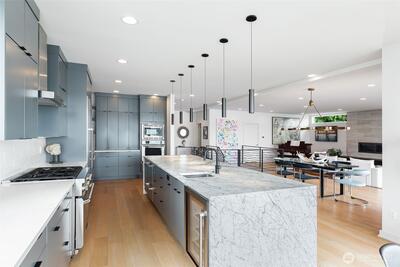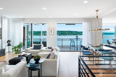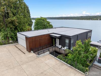 Exceptional modern home perfectly positioned on the shores of Lake Washington, this unique residence was built in 2017 and was designed to maximize its stunning hillside setting...offering panoramic views of the lake, Seward Park, and the mountains from every level. The architecture is both sophisticated and adaptable with refined finishes throughout. Highlights include a beautifully updated, custom kitchen, private office, luxurious primary suite, four additional bedrooms, a gym and multiple living areas. Situated in a private and secure gated community on over half an acre of impeccably landscaped, park-like grounds, the property features 64 feet of waterfront, a private dock, fire pit, and multiple outdoor entertaining spaces and two car garage with storage. Refined palette, quality build with fine attention to detail and completely turn-key.