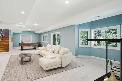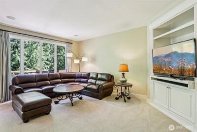 This one-of-a-kind Murray Franklin built home is nestled in a peaceful cul-de-sac steps to Soaring Eagle Park with miles of hiking trails. Over 5500 SF of living space features a dramatic entrance with soaring ceilings, a stairwell with wrought iron railing, & abundant natural light. The main floor showcases hardwood floors, gourmet kitchen with high-end SS appliances, & a den or bedroom with full bathroom. Upstairs you will find 3 bedrooms, bonus media room, & a grand primary bedroom with spa-like bathroom & walk-in closet. Fully finished daylight basement includes 2 more bedrooms, bath, & a huge space ideal for a home theater or game tables. This unique property is moments to Plateau Club. Renowned Lake Washington schools.