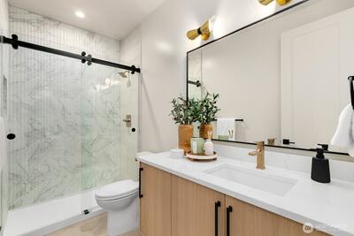 Stunning New Construction home in highly sought-after Bryant neighborhood, thoughtfully designed for flexible, multi-generational Living. Enjoy an unbeatable location within close walking distance to UW campus, premier shopping and dining at U-Village, Husky Stadium, and the Burke Gilman Trail. This exceptional residence offers versatile living spaces and private retreats throughout, including a Jr primary suite/bonus room, main floor office or bedroom, two laundry rooms and a secondary kitchen- perfect for extended family or guest accommodations. Energy-efficient features include an installed solar system with EV charging outlet combining sustainability with modern convenience, Additional highlights include cost saving gas range, on-demand gas hot water heater with recirculating pump, high-speed Ethernet wiring throughout, a built-in sound system and smart home security system for seamless living. A rare opportunity to own a beautifully crafted home in one of Seattle's most c