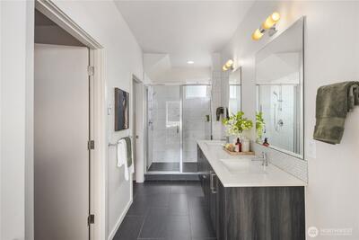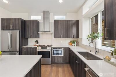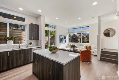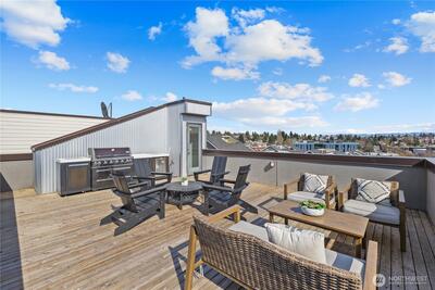 Tucked into the heart of Fremont, this striking standalone townhome offers the best of both worlds - privacy at home with the energy of one of Seattle’s most vibrant neighborhoods just steps away. With over 1,750 square feet, 3 bedrooms, and 2.25 baths, you’ll love the natural light, modern layout, and the luxury of no shared walls. The open main level was made for entertaining, while the top-floor primary suite feels like a true retreat, complete with sweeping city and lake views. Two additional bedrooms offer flexibility for guests, a home office, or both. A fenced patio brings ease to everyday living, and the rooftop deck with a custom built-in bar and grill? That’s where sunset dinners, city, lake, skyline and Mt. Rainier views steal the show. Built by Sage Homes NW with thoughtful design and quality craftsmanship throughout, plus dedicated off-street parking for added ease. Just blocks to Fremont’s restaurants, coffee shops, breweries, boutiques, and the Burke Gilman Trail