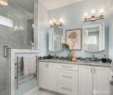 Sitting high off the street with sweeping views of Green Lake, the Skyline & the Olympics this centrally located 2019 custom built Green Lake home features high end finishes, large spaces & a gorgeous ADU perfect for multi-generational living, guests or rental income. Custom everything in this home from the high end kitchen finishes, built in cabinets/desks/mudroom, a 4-level elevator & added shop off the 2-car garage - everyone gets what they want here! The vaulted ceilings on the top level allow for supersized windows filled with southern light drenching the living room, dining room, kitchen, play space, walk in pantry & half bath. One floor down are the 4 main home bedrooms including a primary suite w/ views of the lake, fireplace, ensuite bath w/ heated floors and two walk in closets, a 2nd full bath & laundry are also on this level. The entry level features a laundry/craft/office space, a second office or guest space, a full bath & the 1 bed, 1 bath ADU with separate entrance off