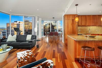 Residence 2412 rises twenty four floors above the city, offering a refined two bedroom home with open den in one of the Eastside’s most enduring architectural landmarks—Bellevue Towers. Floor to ceiling glass frames city, lake, and mountain outlooks while benefiting from the prized corner stack as daylight transitions into evening. The thoughtfully designed layout separates the primary suite from the guest bedroom, while the open den provides flexible space ideal for a home office or additional living area. A chef’s kitchen appointed with SubZero and Wolf appliances opens seamlessly to the main living space—intentional, elegant, and built for living well. Bellevue Towers delivers full service living with 24-hour concierge, newly reimagined wellness and fitness amenities, spa, theater, resident lounges, and a private half-acre urban garden. Steps from Bellevue Square, Downtown Park, and the country’s most influential employers, Residence 2412 offers rare ownership within an ad
